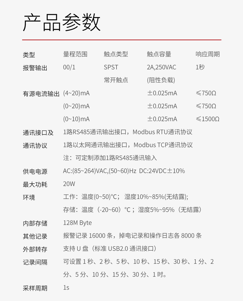 产品参数
