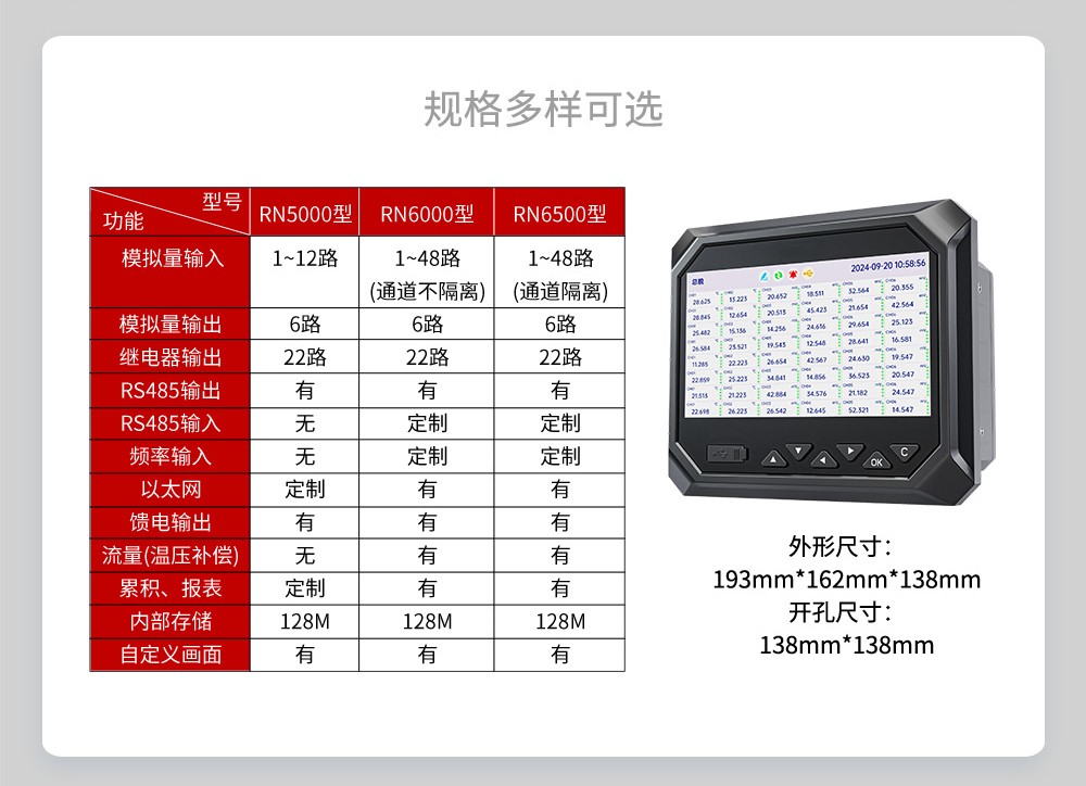 本产品为工业无纸记录仪,配置 3.5 英寸 TFT 真彩全视角液晶显示屏。