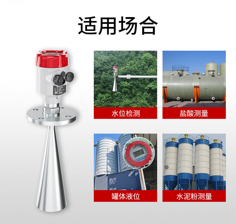 本产品波束能量低,对人体及环境均无伤害,还具有不受介质比重的影响、不受介电常数变化的影响、不需要现场校调等优点,广泛应用江河、水库、湖泊、灌渠、河道等自然水域水文监测场合。